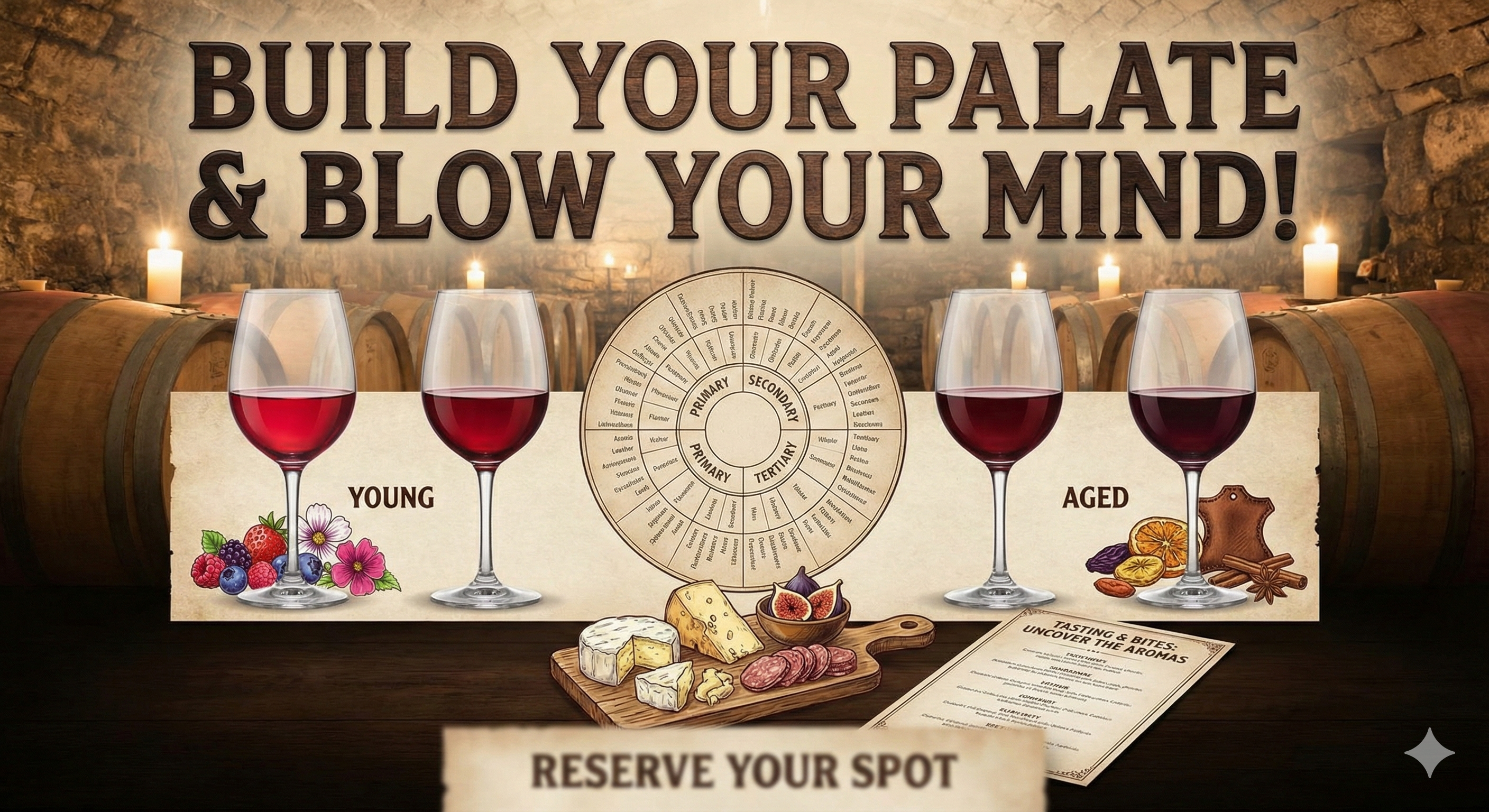 This class will uncover the aromas that are hiding in young wines, and how they express themselves in wines that are aged in your cellar. We will discover the primary and secondary aromas hiding in young wines and then enjoy the tertiary (aged aromas) that develop with age and proper cellaring in the older vintages. This is a rare treat to taste and understand older wines, and enjoy them alongside their young counterparts. We’ll have some bites to accompany the wines and offer suggestions for food pairings too!
